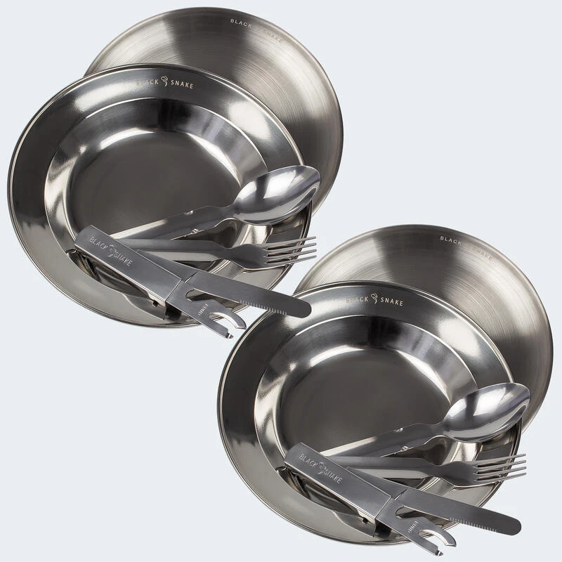 · couverts empilables: couteau, cuillère, fourchette et ouvre-boîte & ouvre-bouteille par set