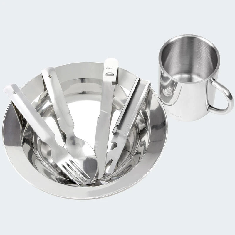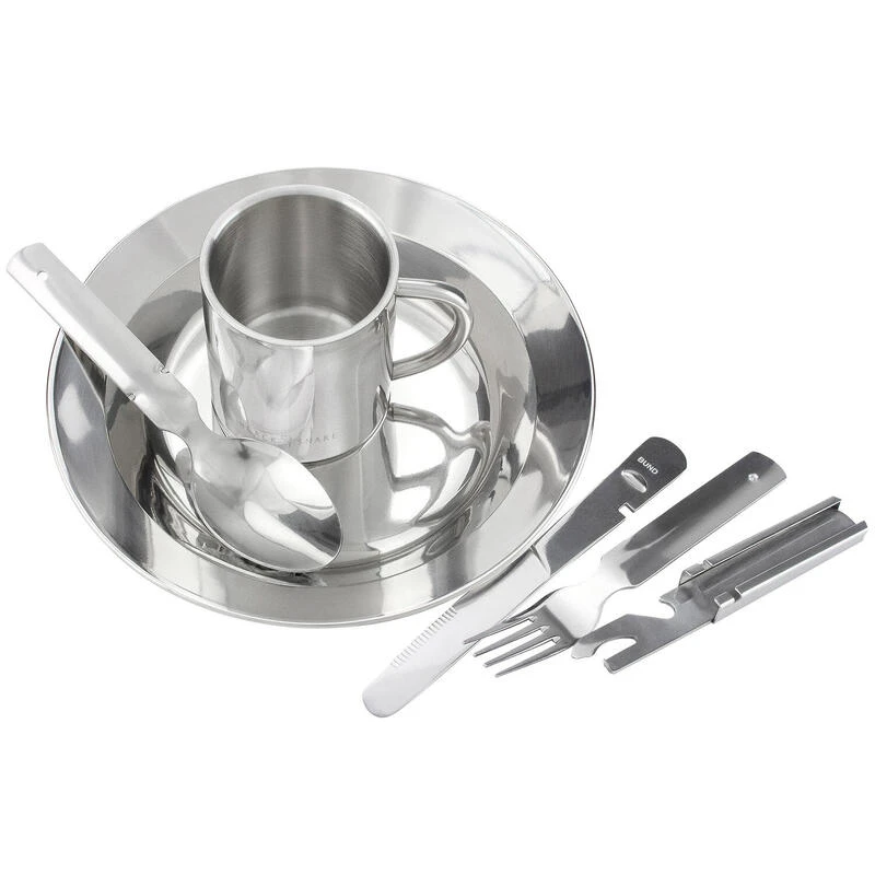 · 4 pièces de couverts par set: fourchette, couteau, cuillère, ouvre-bouteille & ouvre-boîte