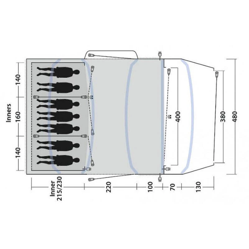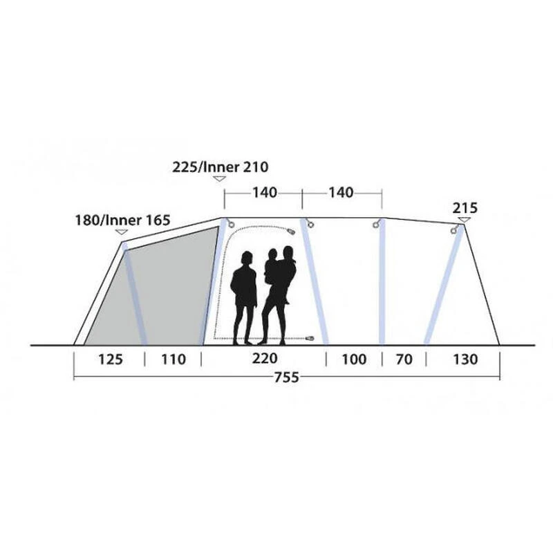La tente de camping Outwell Jacksondale 7PA est un mod猫le gonflable en polyester compos茅e de 3 chambres pouvant accueillir 7 personnes.